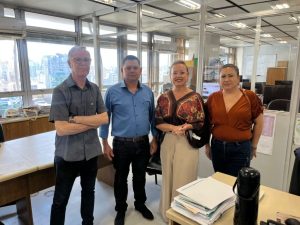 O Secretário Municipal de Assistência Social de Jacuizinho, Jair Demétrio de Matos, acompanhado da Diretora de Habitação, Nara Alias Oliveira, e da Assistente Social, Cleres Revelante, esteve em audiência na Secretaria de Planejamento do Estado do Rio Grande do Sul. Durante o encontro, a comitiva municipal buscou informações e orientações sobre os programas habitacionais do Estado, além do Programa Nenhuma Casa sem Banheiro, com o objetivo de garantir a participação do município nos próximos editais previstos pelo governo estadual.